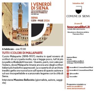 TUTTI I COLORI DI MALAPARTE (I VENERDI’ DI SIENA) This event has expired Ora di inizio 0:00 5 Febbraio 2026 Ora di fine 23:00 6 Febbraio 2026 Condividi: